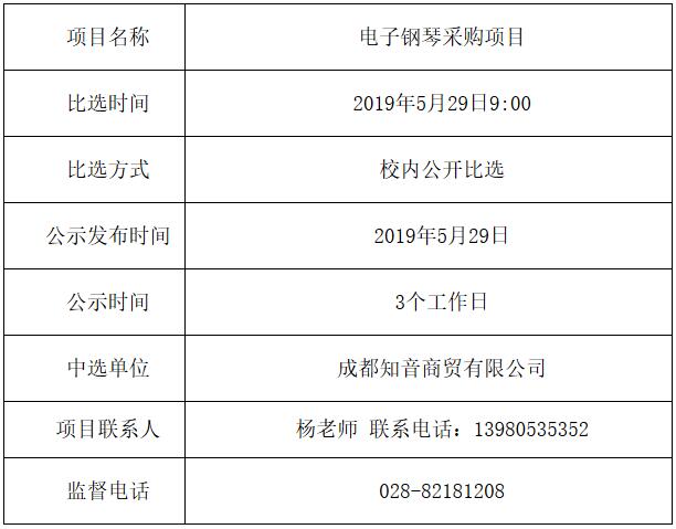 四川矿产机电技师学院 电子钢琴采购项目比选结果公示