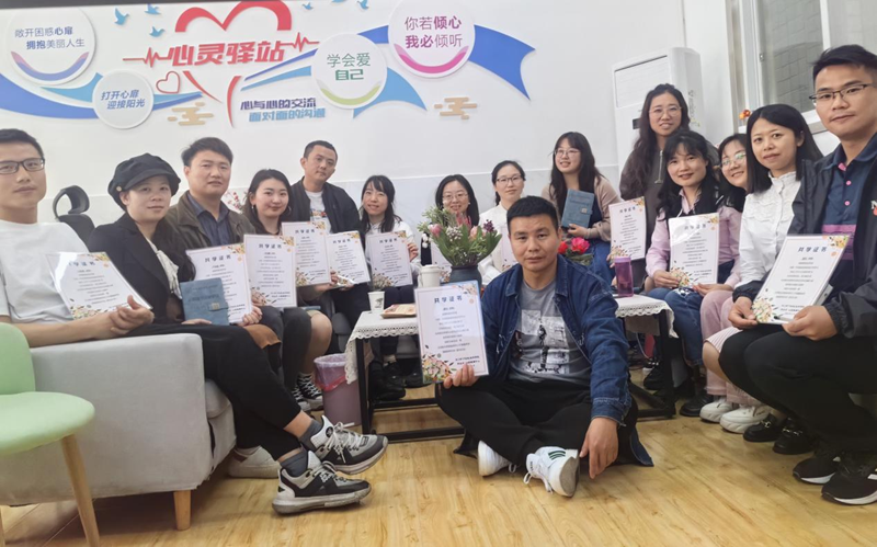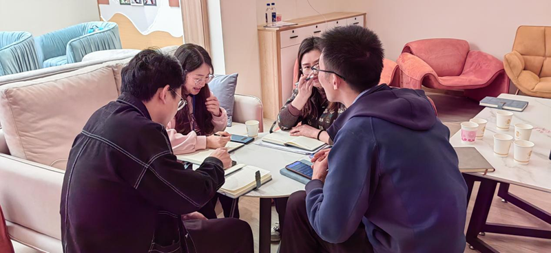 在活动中,心健中心张艳玲老师和吴雨梦老师主持心理辅导员通过大组集体分享和3-4人小组对话练习的方式开展共学。大家分享了自己加入兼职心理辅导员培训的初心和动力,也表达了初学入门的感受和经验,并在小组内展开对话练习。