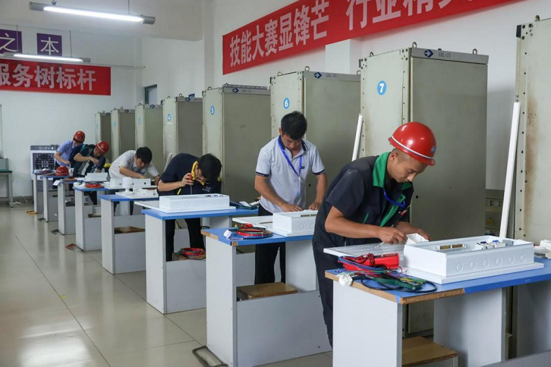 此次比赛为期两天,吸引了来自崇州12家单位56名选手报名参赛。比赛分为理论考试和实操考核两部分。按照实操要求,选手们需在规定时间内完成家具照明装配电箱的组装、接线,完成指定照明电路及插座电路的安装、调试。现场气氛紧张而激烈,选手们熟练地操作、移动,手中动作一气呵成。