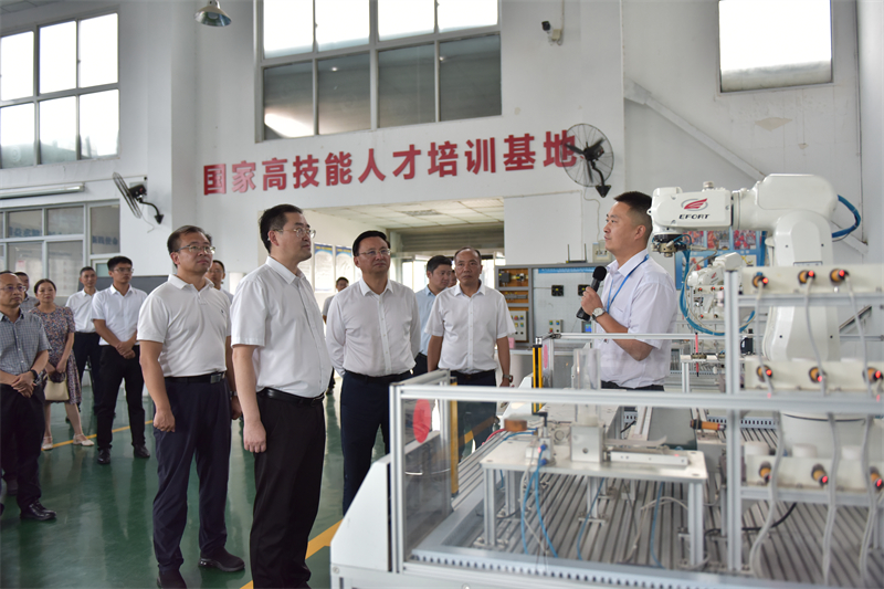 调研组一行实地走访调研了我院数字孪生实训中心、新能源汽车实训基地等,详细了解我院办学情况和近年来高技能人才培养、产教融合发展等工作情况。