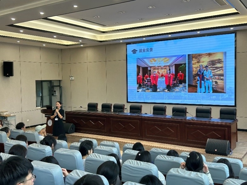 旅游服务与管理专业由专业负责人杨毅主持,专业教师付萍讲解,她从崇州的历史渊源讲起,用学长学姐的实例做支撑,向同学们介绍了专业学习安排、发展前景等,在充满欢声笑语的师生互动中,增进了同学们对专业的了解与兴趣。