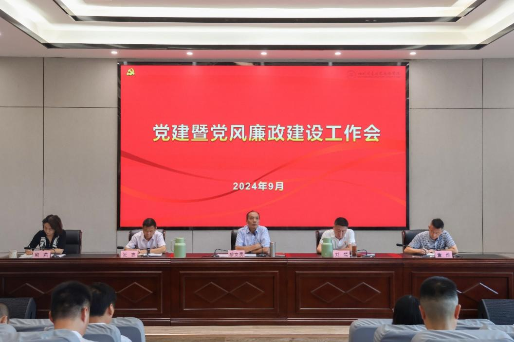 9月25日,学院召开下半年党建暨党风廉政建设工作会。党委书记黎文勇总结学院上半年党建及党风廉政建设工作并部署安排下半年工作,纪委书记熊燕安排部署下半年纪委重点工作,党委副书记、院长刘靖做总结讲话。会议组织学习党的二十届三中全会精神和全国教育大会精神。