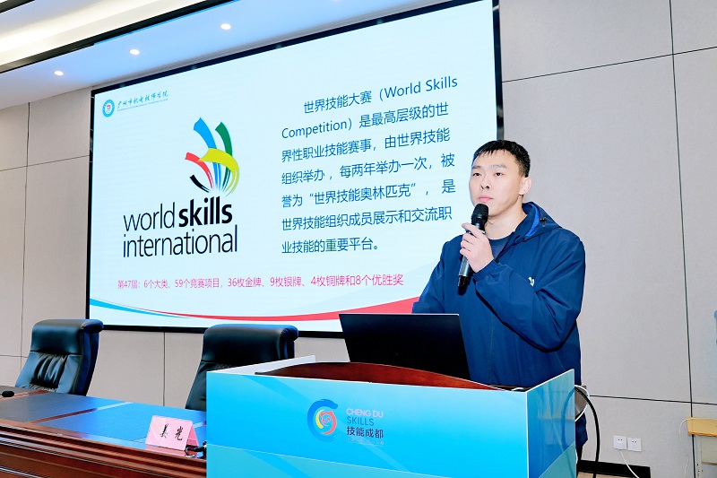 为发挥工匠人才示范引领作用,激励广大技工院校师生传承工匠精神,11月26日,由成都市人力资源和社会保障局主办,成都市广播电视台、成都市成视职业培训学校承办的“大国工匠进校园”活动在我院开展。世界技能大赛工业控制项目国家队教练姜光,第47届世界技能大赛自主移动机器人项目冠军蒋家俊莅临我院进行交流指导。学院副院长董维及相关部门负责人参加活动。