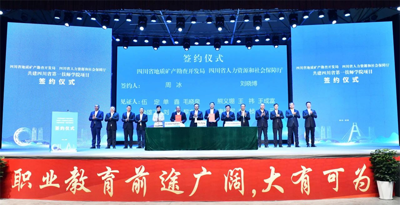 参加签约仪式的还有省地质局、人力资源社会保障厅有关部门主要负责同志以及四川矿产机电技师学院师生代表。