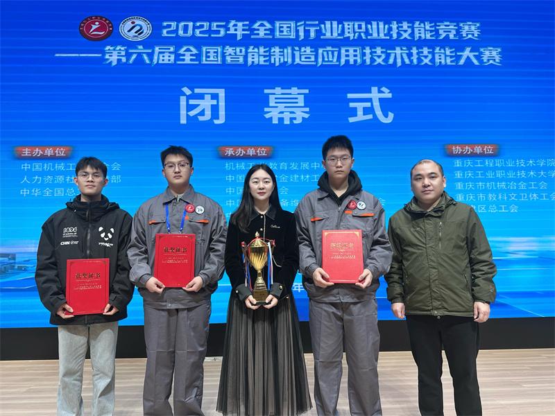 12月19日,第六届全国智能制造应用技术技能大赛在重庆落下帷幕,学院学子代表四川省斩获“智能制造系统运维员”赛项一等奖,教师宁嘉伟获评优秀教练!