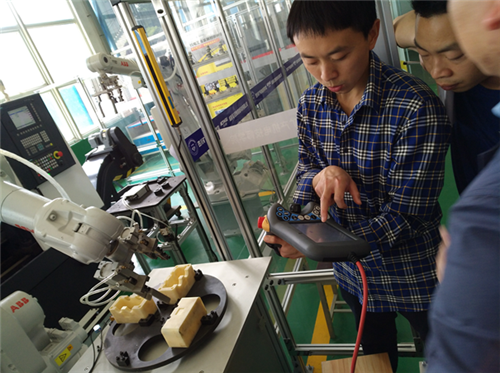 本次培训由成都海川四维智能科技有限公司的两位技术人员主讲。工业机器人方面就系统安全事项、ABB机器人操作和编程、机械零点校准、物料码垛、示教器面板操作等进行讲解;无线网络技术方面就无线通讯和PLC通讯、无线工作站操作、无线传输等进行讲解;柔性生产线方面就加工装配机器人TCP、工件坐标系设定、加工装配机器人操作和编程、加工装配设备操作及常见故障处理等进行了讲解和实操训练。培训过程中,参培人员认真听取理论知识、积极进行操作练习,及时与老师交流解惑。