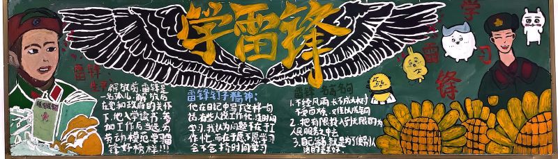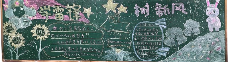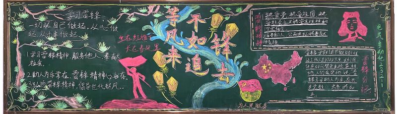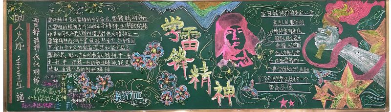 活动期间,各班积极参与,用丰富多彩的粉笔描绘出雷锋事迹,以图文并茂的形式展现雷锋精神,黑板报内容追述了雷锋的光荣事迹,赞扬了他的钉钉子精神,歌颂雷锋同志全心全意为人民服务的品质,各班的板报设计多种多样、创意新颖,既弘扬了雷锋精神,又赋予了时代精神。