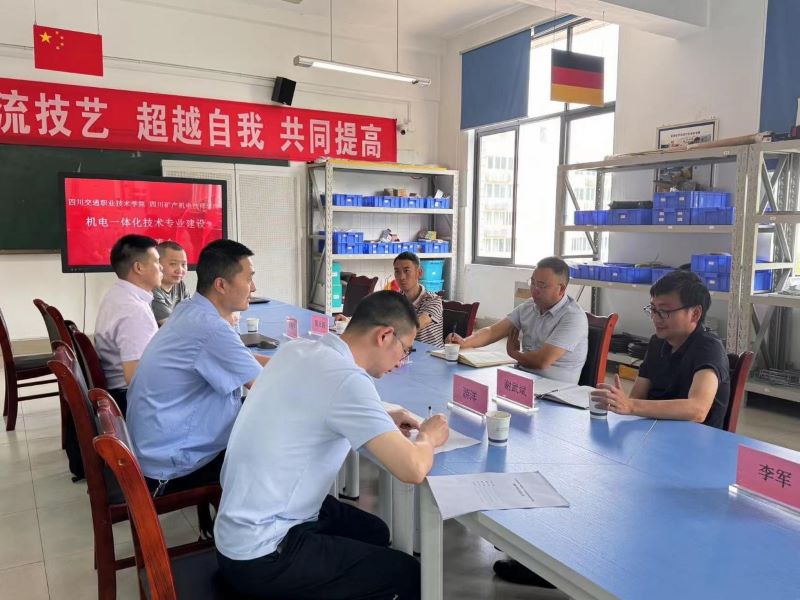 为适应新时代对人才的多样化需求,推动机电一体化专业改革进程,深化专业改革质量,5月15日,四川交通职业技术学院机电系主任伍德军、副主任谢武斌以及实训中心主周元超一行三人到学院开展专业建设交流活动,学院机电系主任周旭、副主任游洋及部分教师接待并陪同参观了智能制造实训基地、工业控制基地、数控加工实训基地等技能培养场地。四川建科旗云科技有限公司总经理屈福平、杰士德精密工业有限公司经理黄维出席本次活动。
