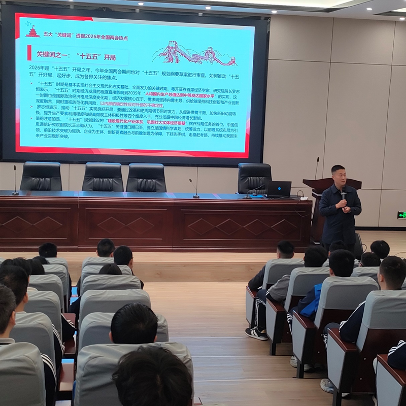 课上,周旭聚焦2026年“十五五”开局之年关键节点,围绕“‘十五五’开局、积极有为、投资于人、智能经济、投融资综合改革”五大热点关键词展开讲解。重点解读了“十五五”规划夯实现代化建设基础、宏观政策积极发力稳经济、坚持投资于人促民生发展等核心部署,结合智能制造专业特色,深入阐释智能经济作为新质生产力关键引擎的重要意义。
