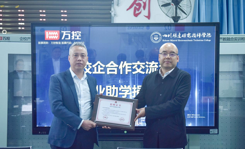 在捐赠仪式上,刘远盟院长代表学院向万控集团的暖心善举致以诚挚谢意。他介绍,学院深耕职业教育多年,荣获多项国家级荣誉,当前正全力建设“西部领先、全国一流”的高水平技师学院。作为电气机柜行业领军企业,万控集团与学院携手同行十三载,为学院人才培养提供坚实支撑,已有百余名技能人才从学院走上企业岗位。此次捐赠的先进电控实训设备,将极大完善校内实训硬件条件,赋能智能制造专业群高质量发展,切实打通课堂教学与岗位实践之间的衔接壁垒。