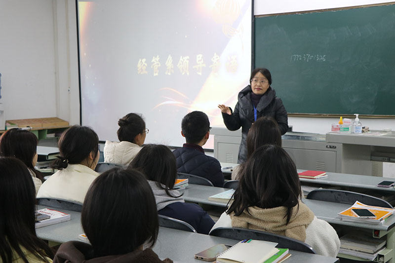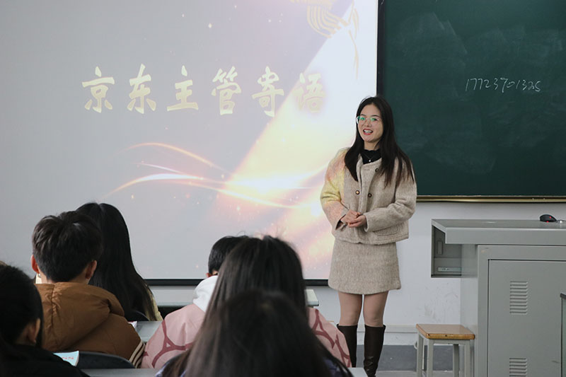 为保障我院2021级电子商务专业学生即将开始为期4个月的京东客服实训工作的顺利开展,2月24日下午,经济管理系在智能制造大楼408教室举行了京东校园实训中心开班仪式暨实训动员大会。系主任赖良杰、副主任赵娜、京东主管教师周雪、系部学生管理教师李家琦、电子商务专业全体教师、全体参训学生参加了会议。