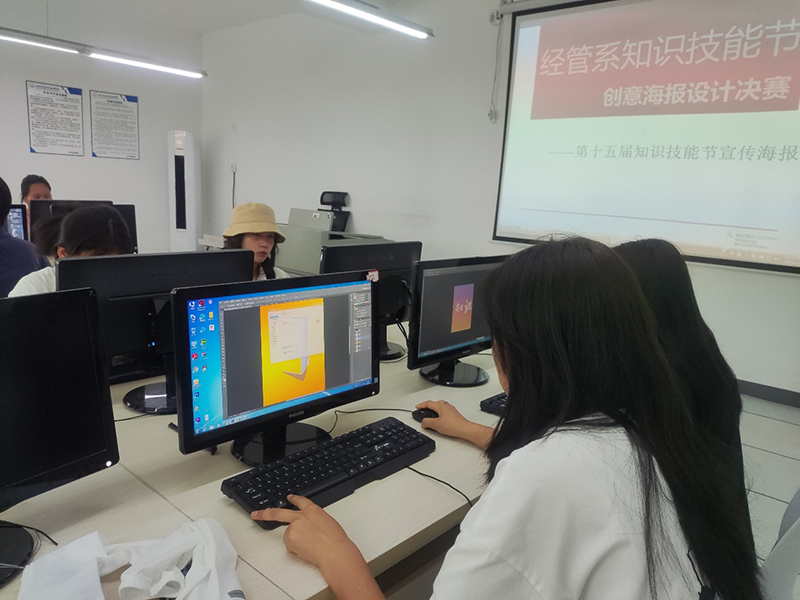 经验从实践中来,为进一步提升学生专业素养,知识与实践相融合。5月17日下午,第十五届知识技能节“创意海报设计”大赛决赛在智能楼308教室开赛。