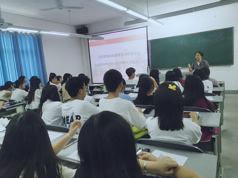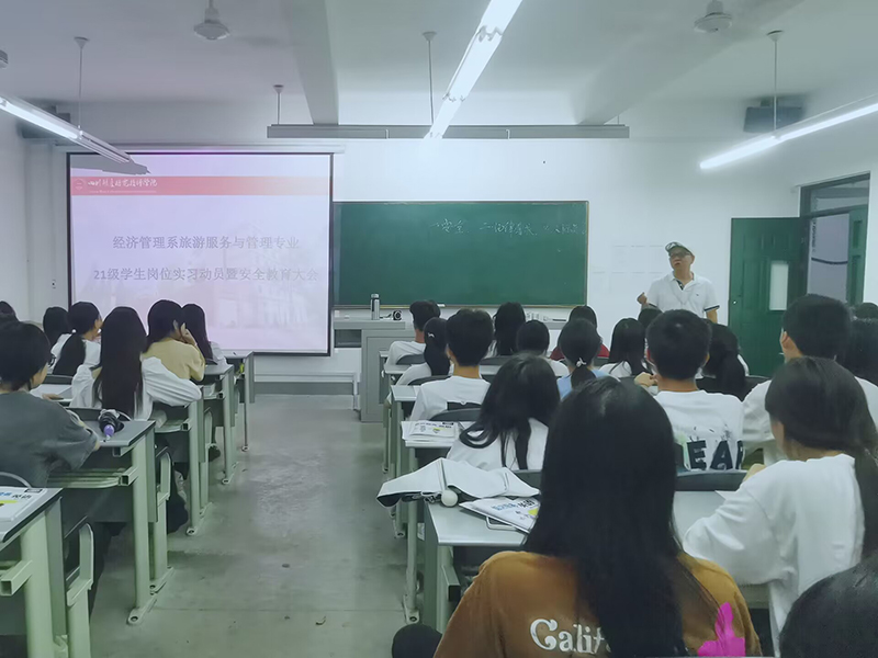 为锻炼学生独立工作能力,深化校企合作,9月5日下午,学院经济管理系在智能楼408教室举行酒店岗位实习动员暨安全教育大会,系主任赖良杰、旅游服务与管理专业教师以及参与实习学生参加。此次实习选派旅游服务与管理专业2021级学生到校企合作单位成都香格里拉大酒店、成都茂业JW万豪酒店、成都机场假日酒店、成都凯宾斯基饭店、成都七一世外桃源酒店、成都天府丽都喜来登酒店进行岗位实习。