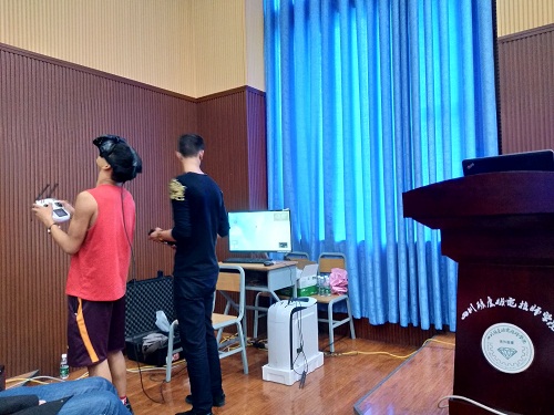 讲座过程中,刘总还邀请了部分老师同学们现场体验VR无人机模拟驾驶技术,让更多的人能够对这项技术有更深刻的了解,同时上台体验过的同学还为大家分享了自己的无人机操控感受。讲座结束后,我系还向在场的同学们作了二维码现场问卷调查,以了解学生对此次“无人机应用技术”讲座的动态信息。