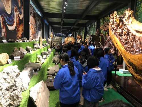 为拓宽美术设计与制作专业同学们的视野,提高学生对地质艺术的欣赏能力,同时培养同学们敬畏自然、珍爱生命的意识,12月5日和6日下午,建筑与地质工程系分两批次带领美术设计与制作专业17级与18年级共两个教学班的同学参观了天演博物馆。