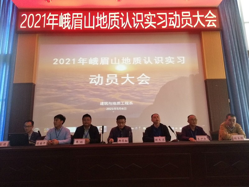 5月6日下午,建地系开展了峨眉山地质认识实习动员大会。学院副院长郑常翔、技安保卫处处长秦少敏、技安保卫处张玉松、教务处处长韦林、学生处副处长陈国华、系主任殷文昌和实习相关老师及参与实习的班级参加了本次动员大会。会议由系副主任张德主持。
