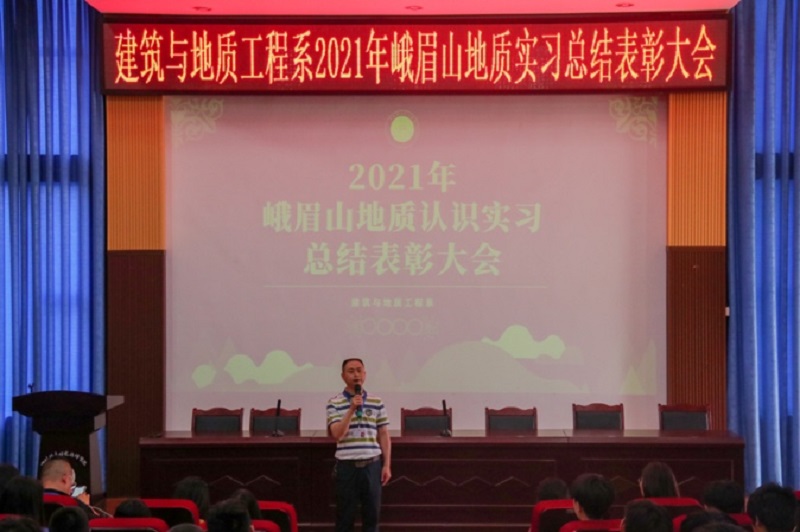 普通地质认知实习对地质类专业学员今后从事地质有着十分重要的作用,为了表彰先进、激励学生后续学习专业热情,于6月17日下午课外活动时间,建筑与地质工程系在学术报告厅举办了本学期5月在峨眉山地质认识实习总结表彰大会。参加本次会议有建地系正副主任、专业教师、实习班班主任及全体实习生。
